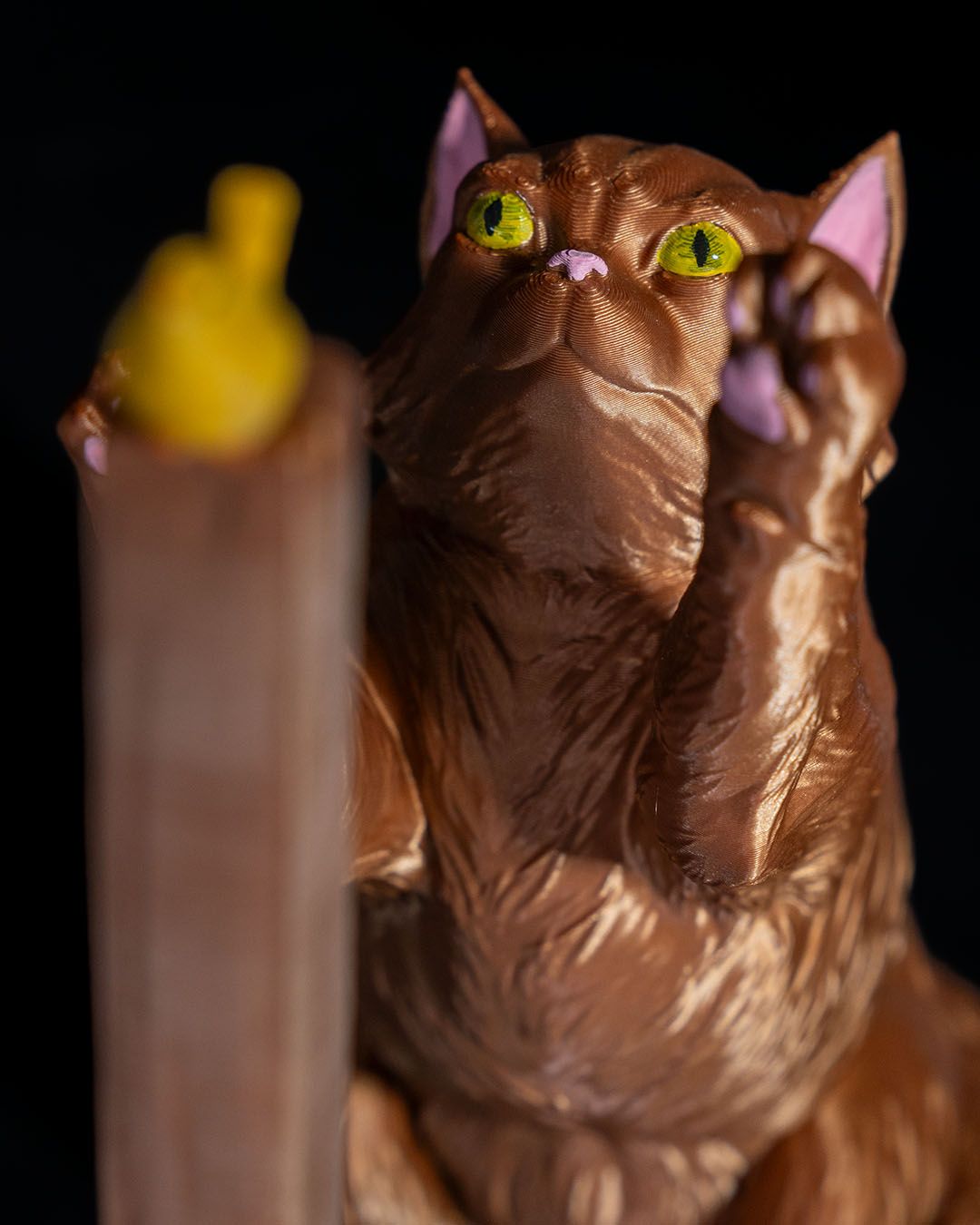 Un adorable chat en pleine mission : attraper le petit oiseau perché au sommet… pendant qu’il maintient fièrement votre rouleau d’essuie-tout !